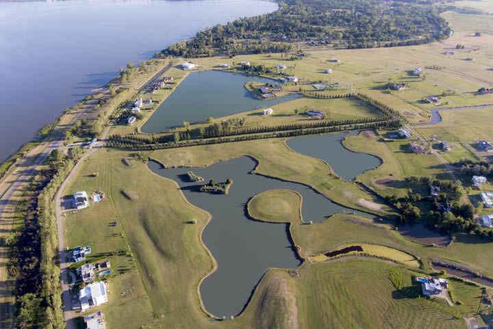 sus 9 hoyos desde el corazón mismo del emprendimiento y es surcado por lagos y